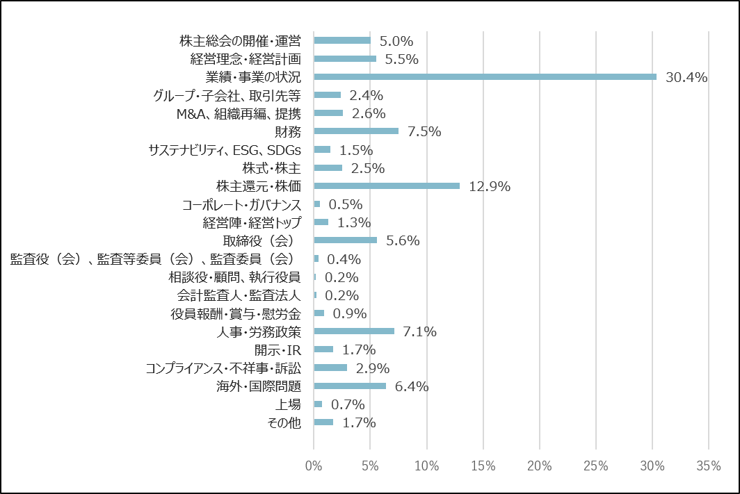 2025年6月(2025年3月議決権基準日)の調査対象会社2,277社のうち、株主からの質問について有効回答のあった1,015社の質問内容を分類すると以下のとおりである。